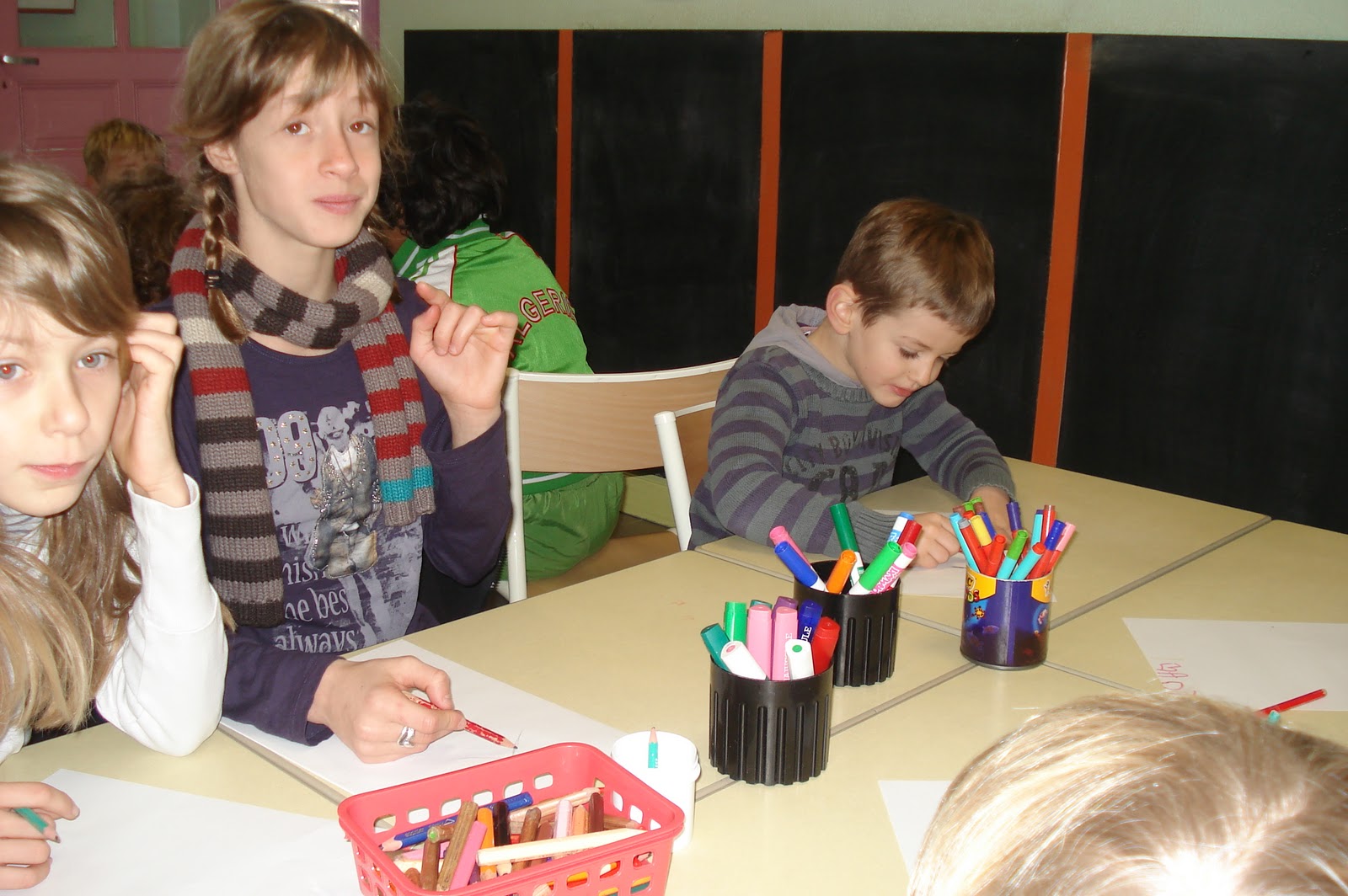 C'est Marie et Victoria qui dessinent avec les petits. |